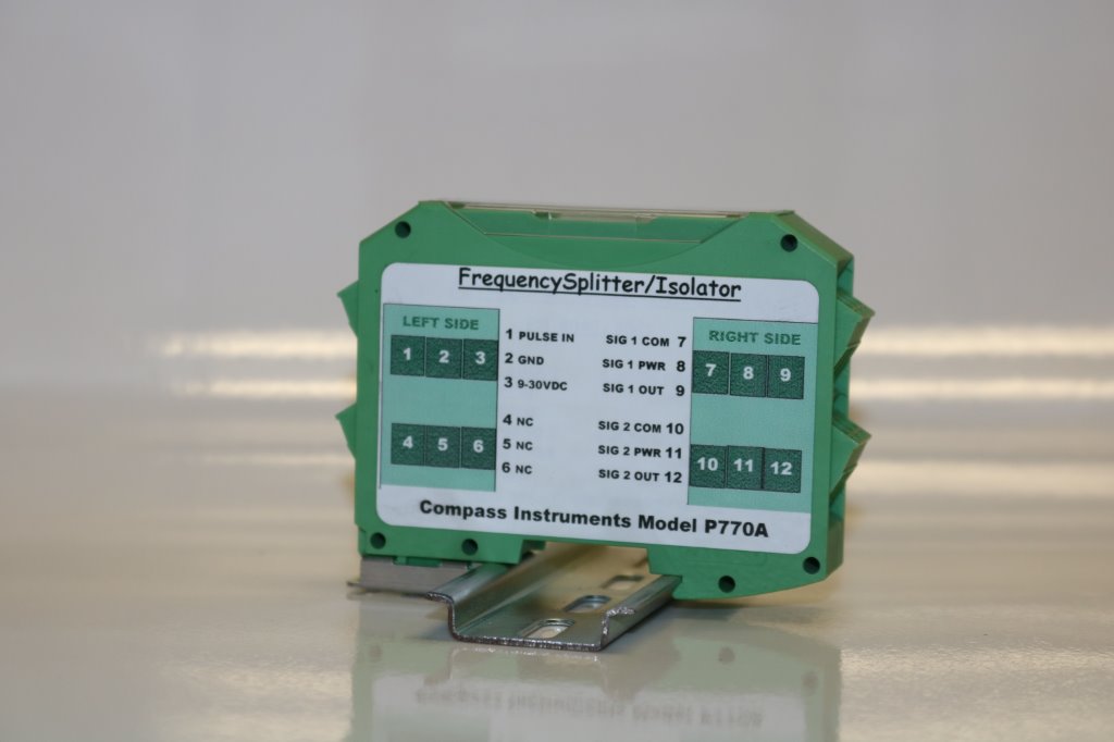 The Compass Instruments P770A Frequency Splitter/Isolator may be used to create two identical isolated frequency outputs from one frequency/pulse input.